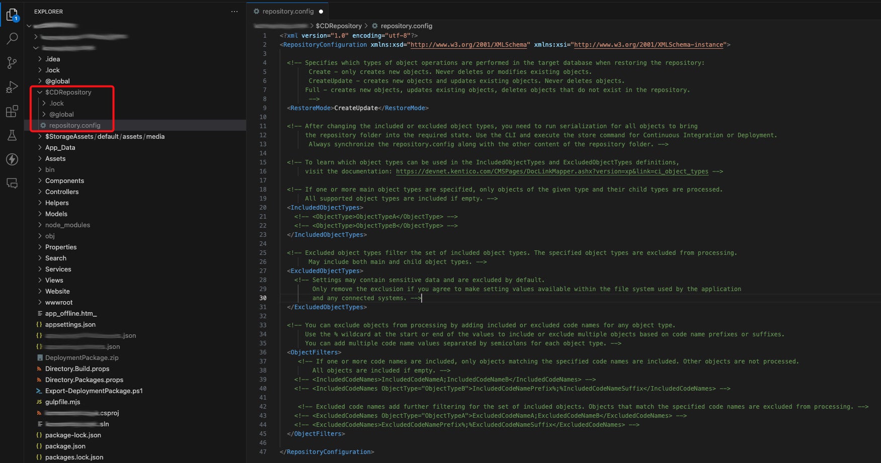 file, create an XML structure defining which objects and object types to include or exclude from the final package. You can use the code provided here. During rapid development, I kept the XML skeleton empty to include all objects in the package, mirroring my development environment. Later, as the client got more involved, we removed test data from the deployed sites and adjusted therepository.config
